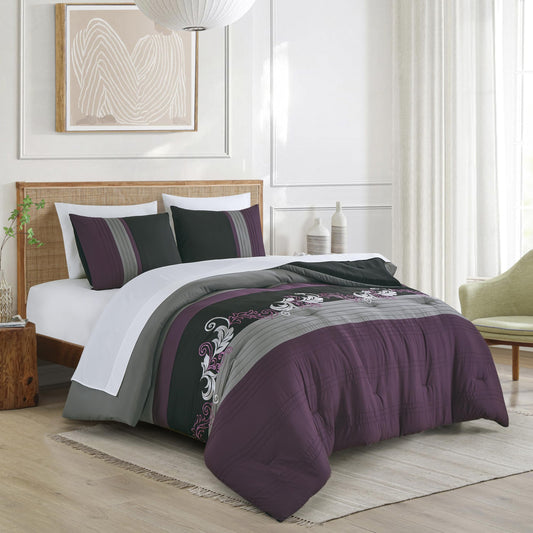 2/3-Piece Plaid Striped Printed Microfiber Comforter for All Season