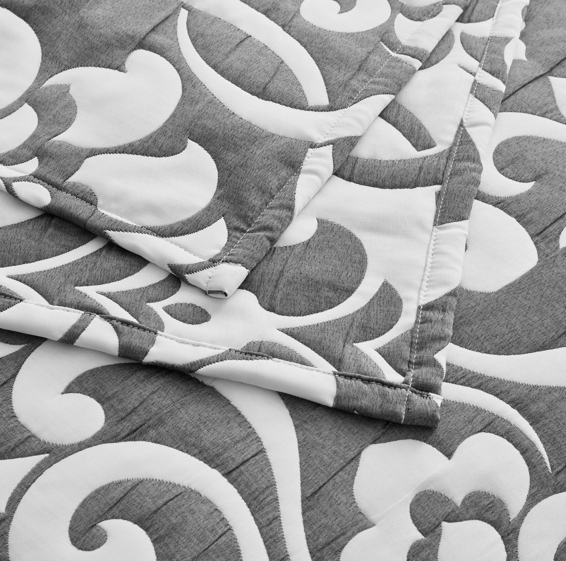 5-Piece Oversized Jacquard Matelasse Damask Pattern Lightweight Reversible Coverlet Set