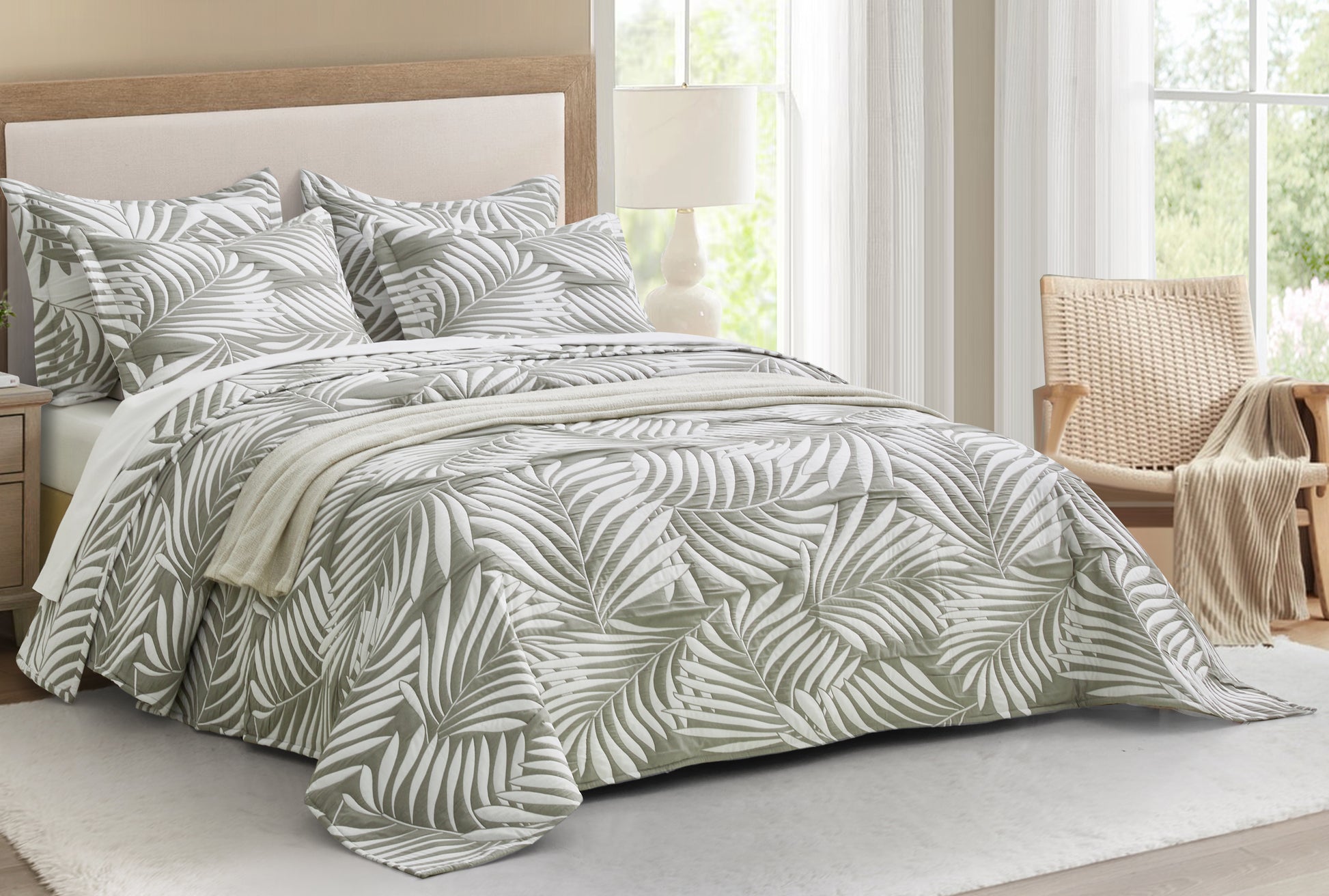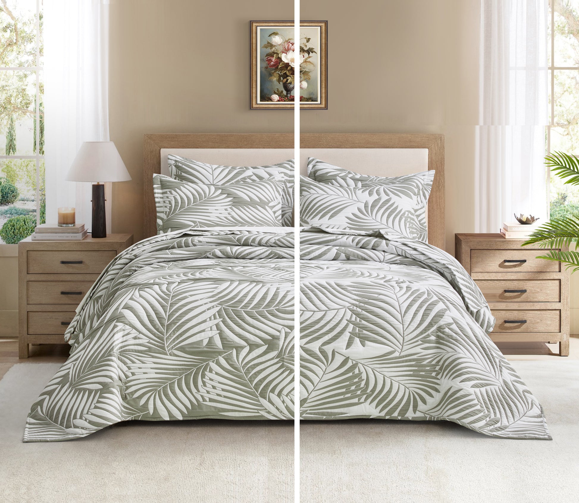 - Elegant Jacquard Damask Design – Features a sophisticated matelassé weave with a floral or Leaf damask pattern for a raised, quilted texture that mimics hand-stitched elegance. Easily switch up your room’s look with a stylish reversible pattern. One side features a darker elegant damask, the other a lighter contrast in the same stunning motif. A timeless style that complements both modern and classic bedroom decor.