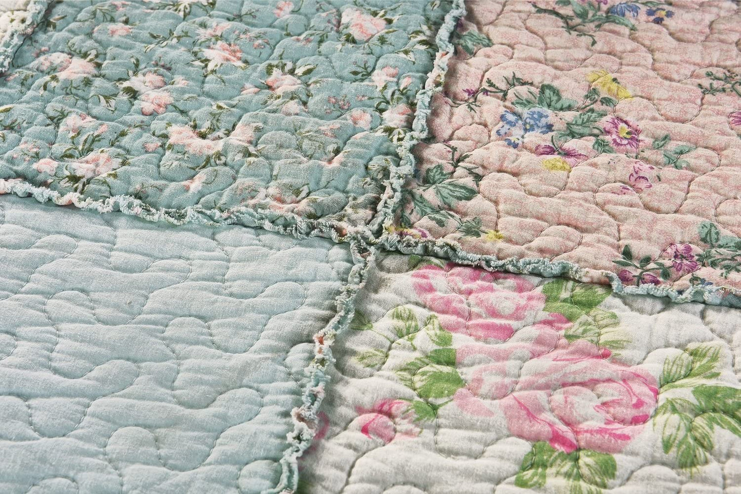 A vintage washed garden floral patchwork reversible quilt. Charming and elegant, the vintage washed patchwork quilt makes a perfect centerpiece for your bedroom décor. Utilizes a combination of four unique floral and paisley prints to further embellish the vintage washed patchwork design making it more beautiful. Decorated with frayed ruffled patches for a rustic farmhouse ambiance. Lightweight and super soft to touch, providing breathable comfort for year-round use, the quilt is made of 100% cotton.