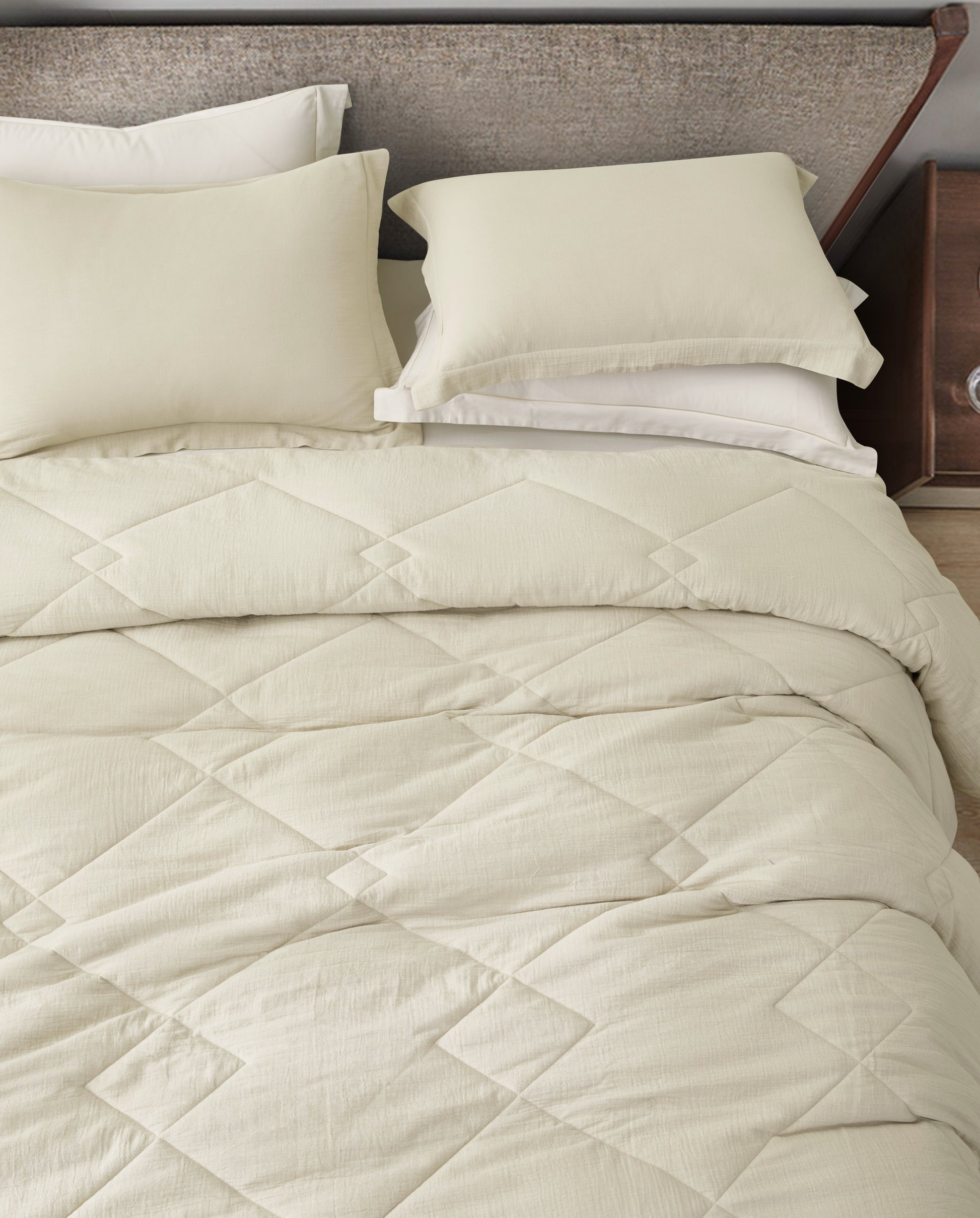 - Elegant Design: With its unique crinkle texture, the comforter exhibits a linen-like touch and feel while bringing you a fantastic sleeping experience. The soothing soft color adds a touch of tranquility to your bedroom decor. A versatile bedding design for you to enjoy a perfect blend of comfort and style.