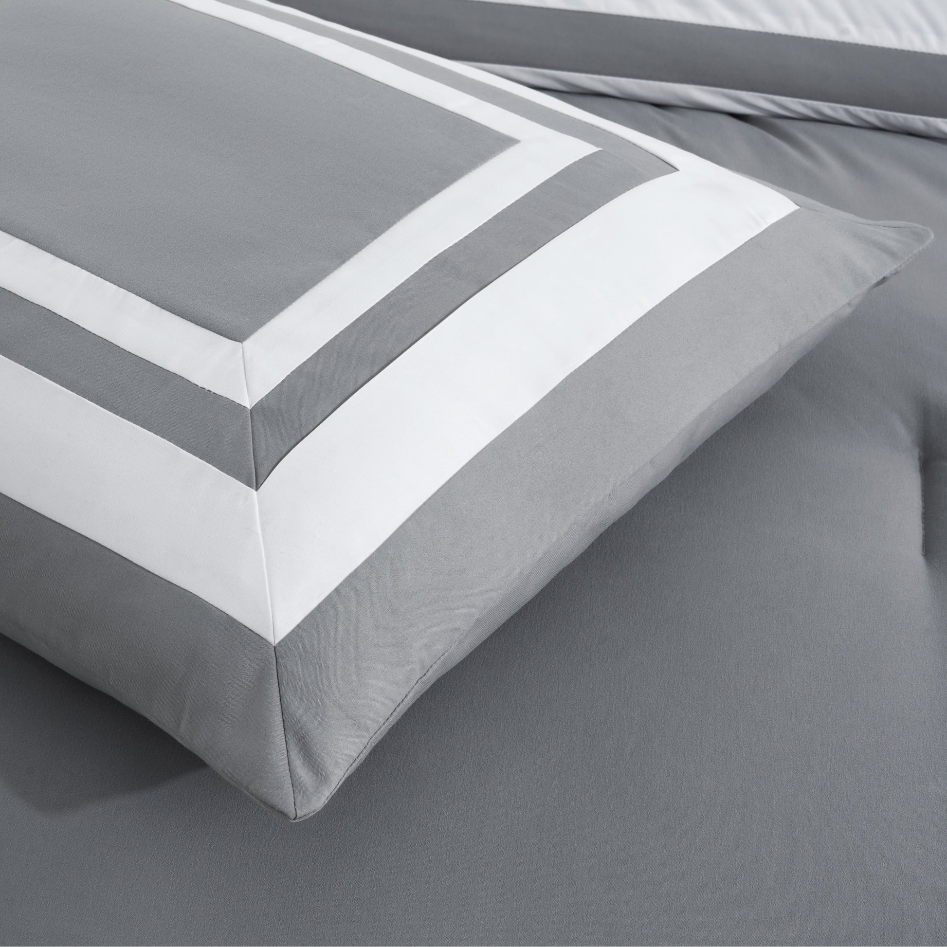 - Give your room a contemporary style with a gorgeous contrasting border to bring a simple yet luxurious hotel look to your bedroom. The color block and border patterns are fabric pieced together to complete the bedding