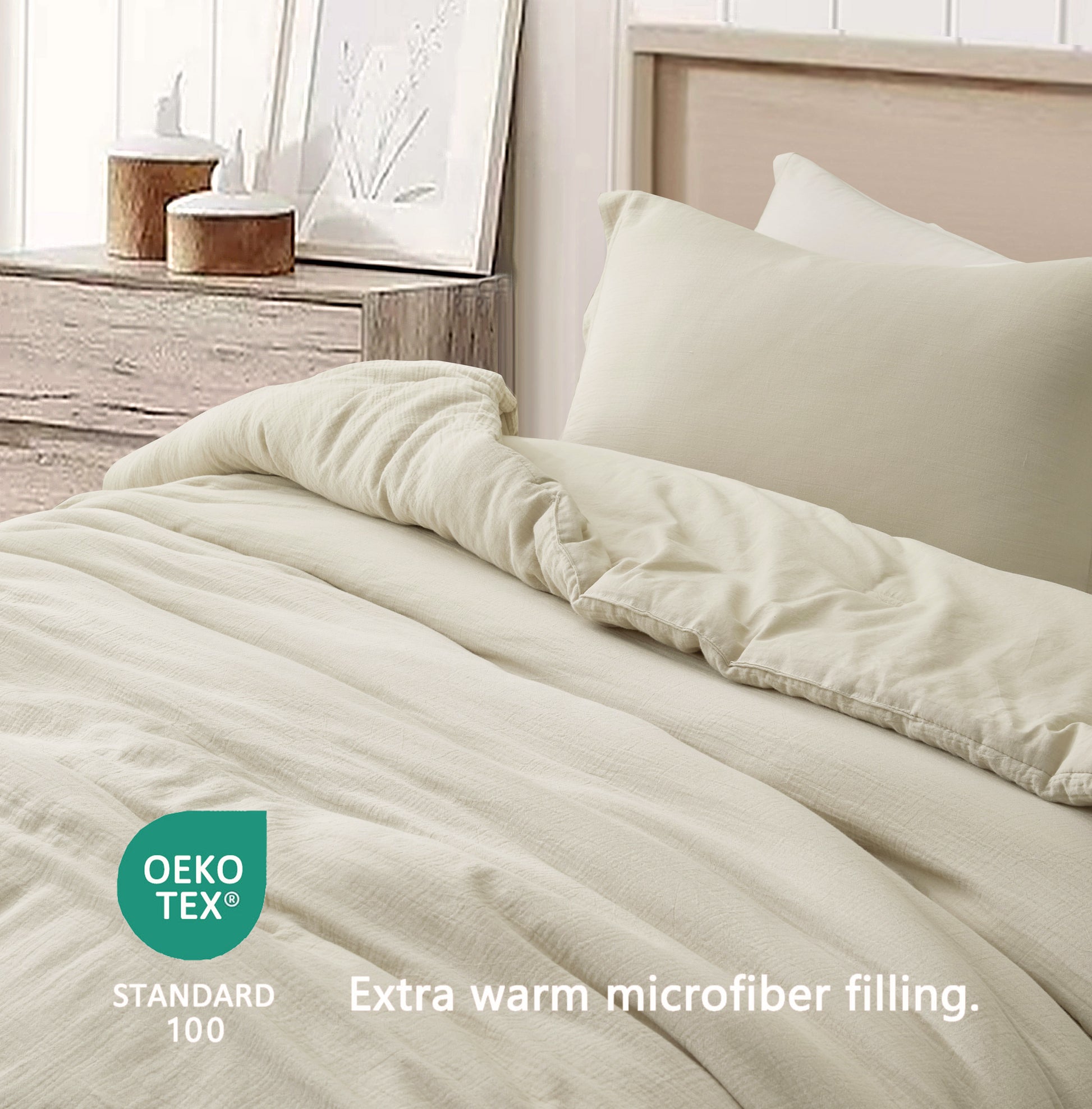 - Elegant Design: With its unique crinkle texture, the comforter exhibits a linen-like touch and feel while bringing you a fantastic sleeping experience. The soothing soft color adds a touch of tranquility to your bedroom decor. A versatile bedding design for you to enjoy a perfect blend of comfort and style.