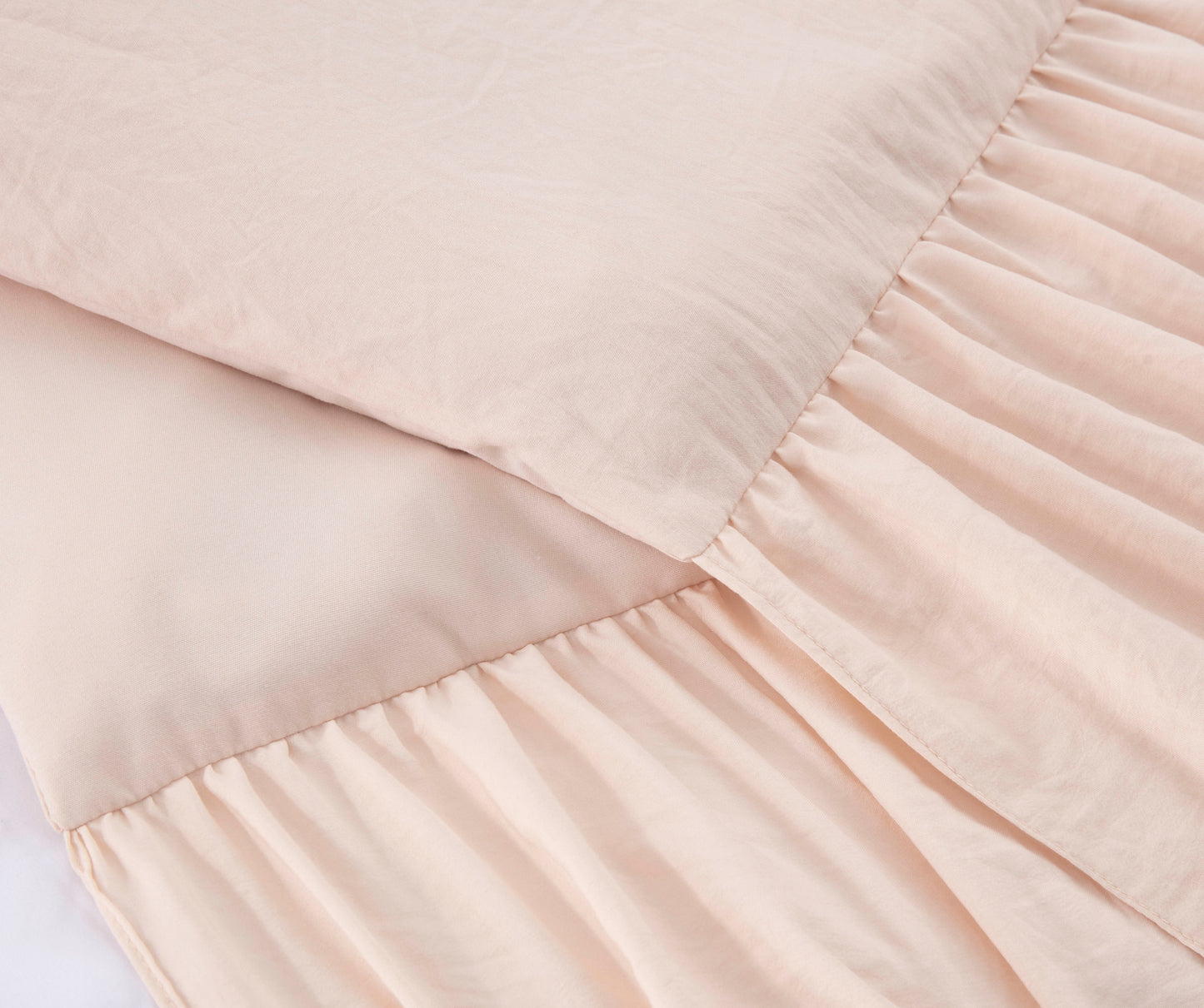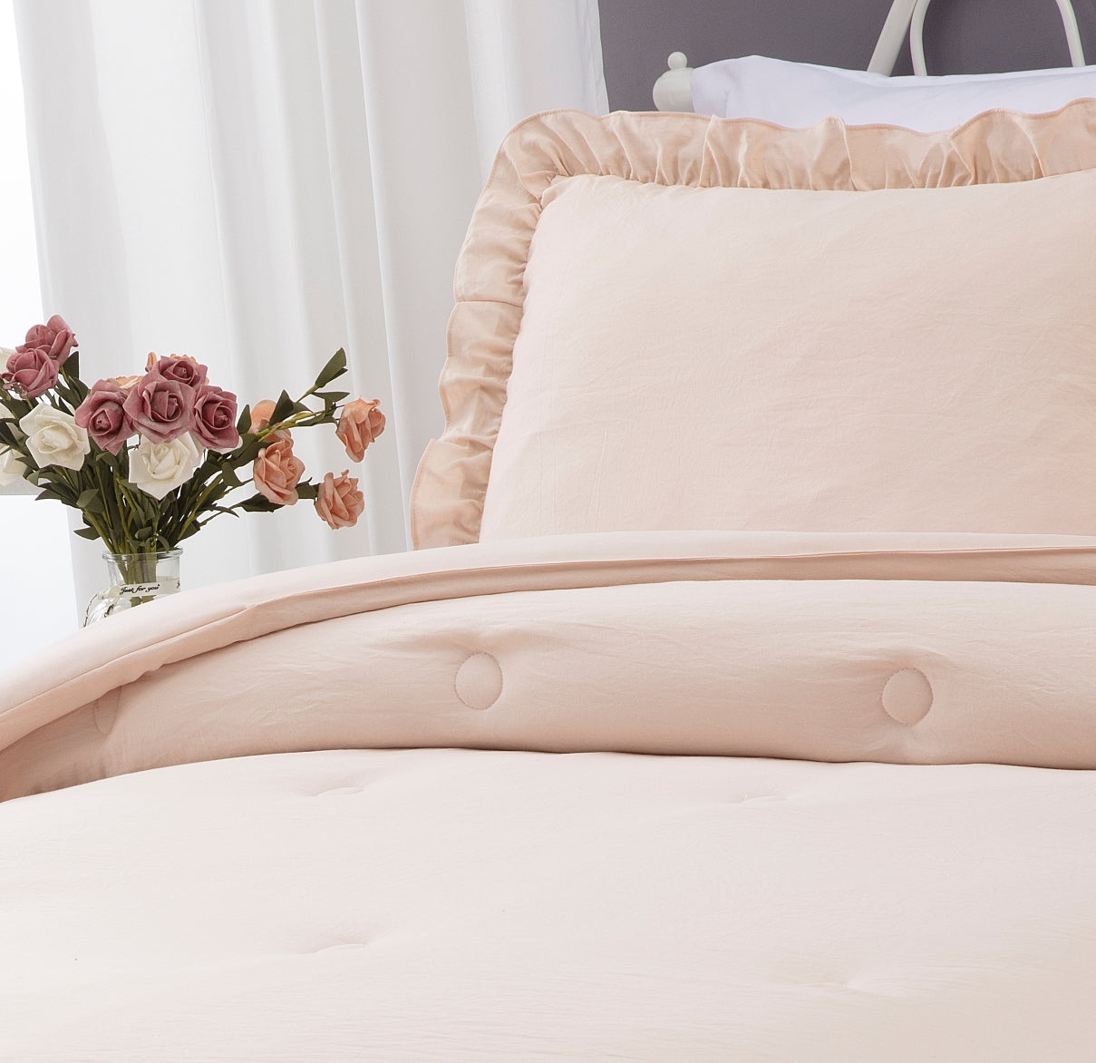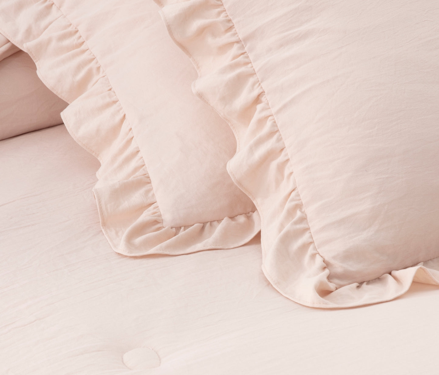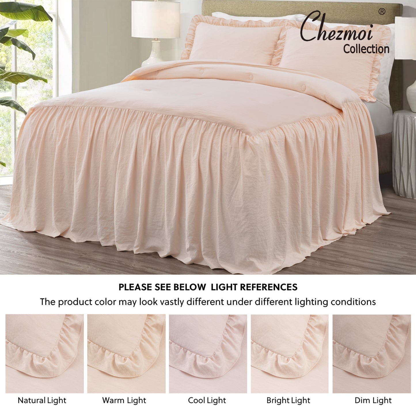 - Gorgeous and elegant feminine bedspread with a long ruffle skirt drop to add a perfect complement to a French Country farmhouse style bedroom décor