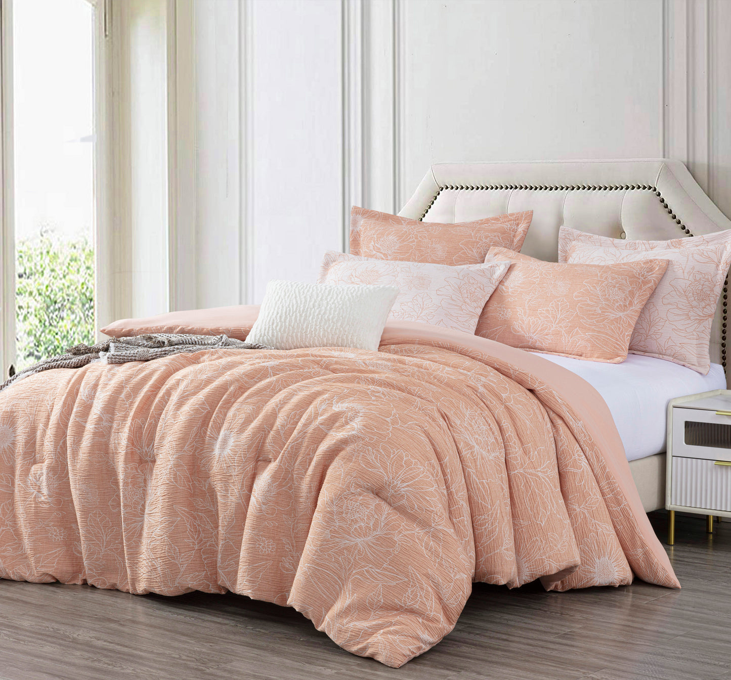 Introducing the Chezmoi Collection Katrina Floral Comforter Set, where elegance meets comfort in every weave. Transform your bedroom into a sanctuary of style and relaxation with this exquisite bedding ensemble. Crafted with meticulous attention to detail, the Katrina Floral Comforter Set boasts a stunning coral and white color palette, adorned with a delicate floral botanical pattern that adds a touch of sophistication to any décor. The soft jacquard textured fabric offers a luxurious feel, while remaining lightweight and breathable, ensuring comfort in all seasons. This set includes everything you need to complete your bedding ensemble: one comforter, four coordinating pillow shams (two pillow shams for twin size), and one charming faux fur fleece cushion for added flair. Whether you're curling up for a cozy night's sleep or lounging in bed on lazy mornings, the Chezmoi Collection Katrina Floral Comforter Set provides unparalleled comfort and style. Upgrade your bedroom décor effortlessly with the timeless elegance of the Chezmoi Collection Katrina Floral Comforter Set. Perfect for your own master suite or as a thoughtful gift for a loved one, this bedding ensemble is sure to become a cherished staple in any home.