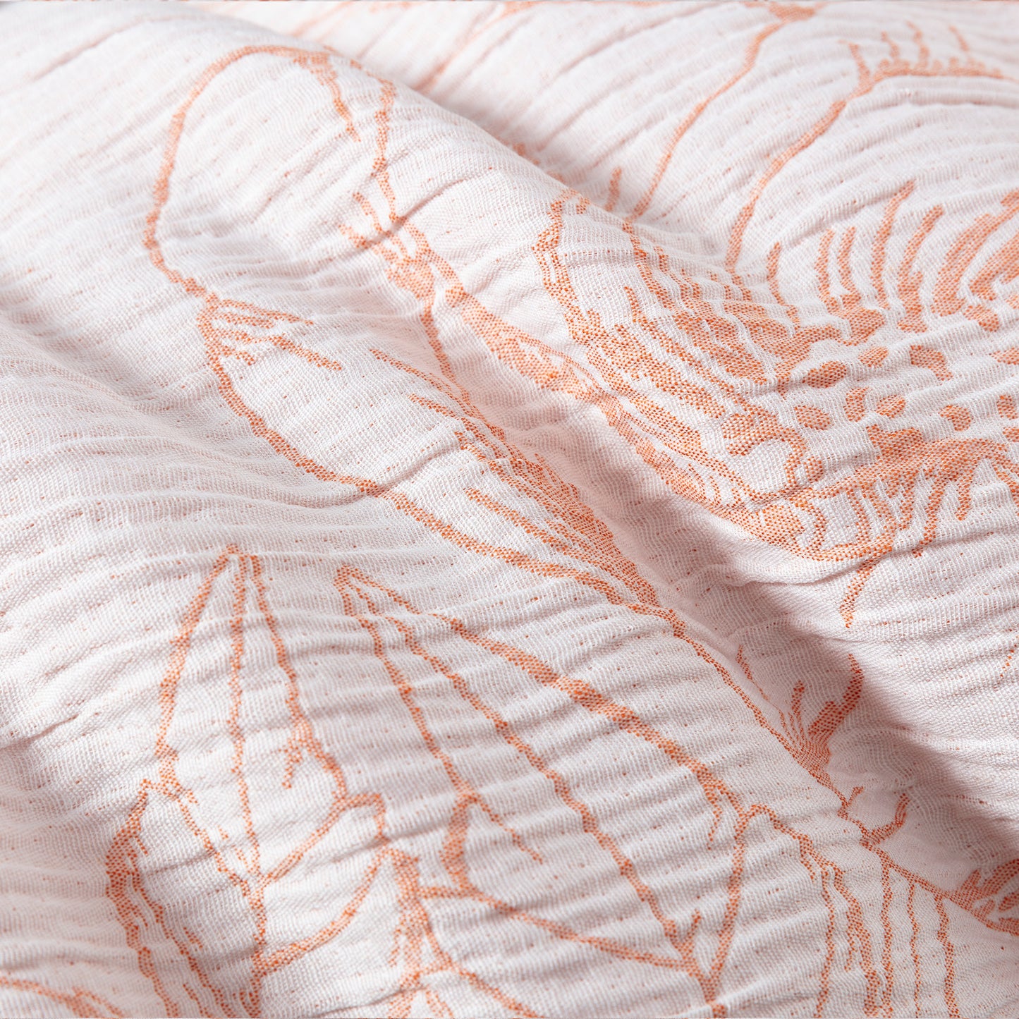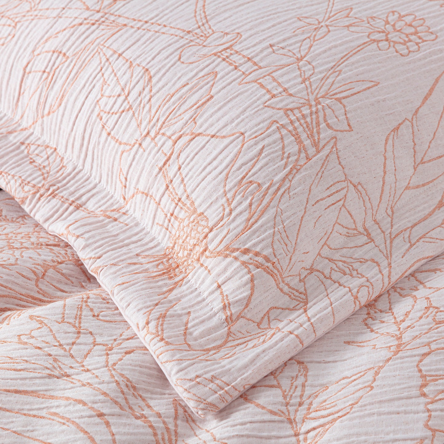 - The comforter is made of 100% polyester, the fabric is jacquard woven to create the textured floral pattern while it maintains a super soft and versatile lightweight feel, suitable for year-round use.
