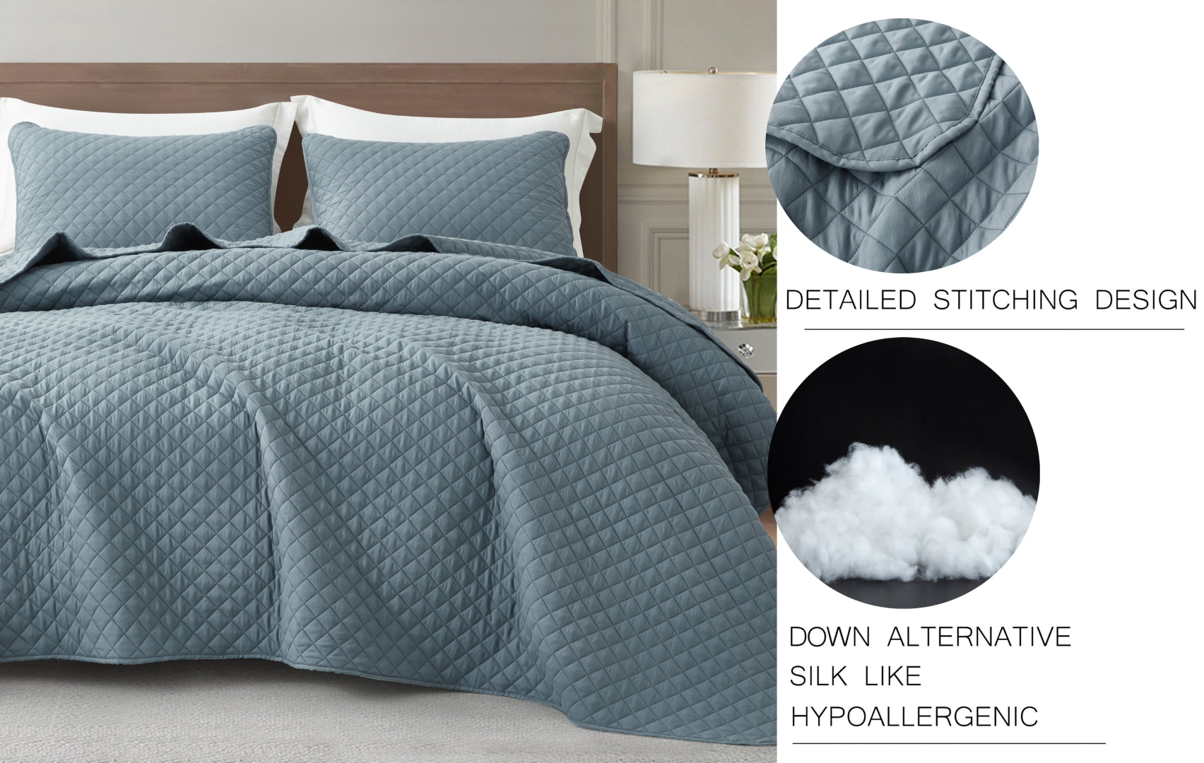 Teo Diamond Stitch Soft Washed Microfiber Quilt Bedspread Set