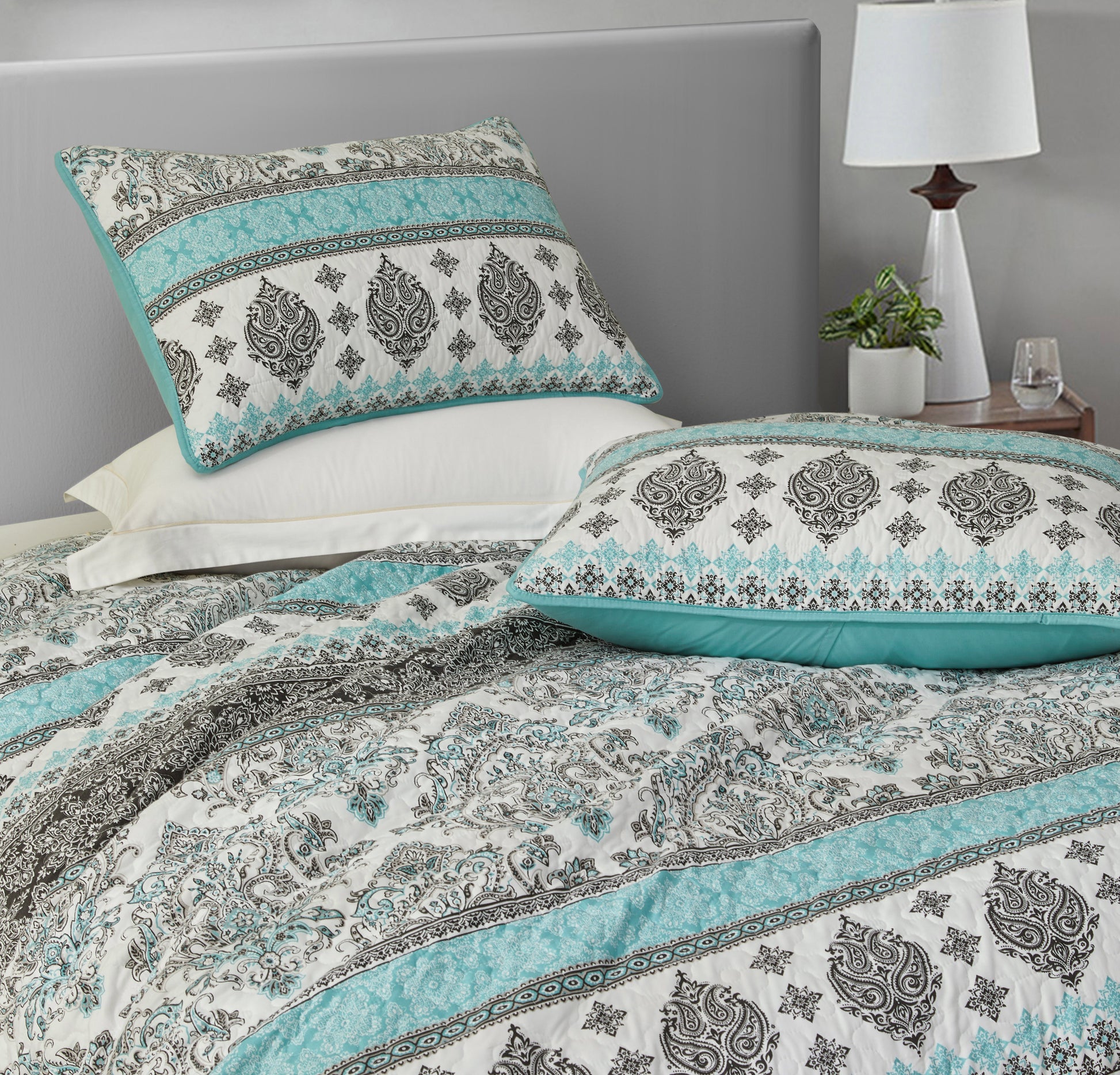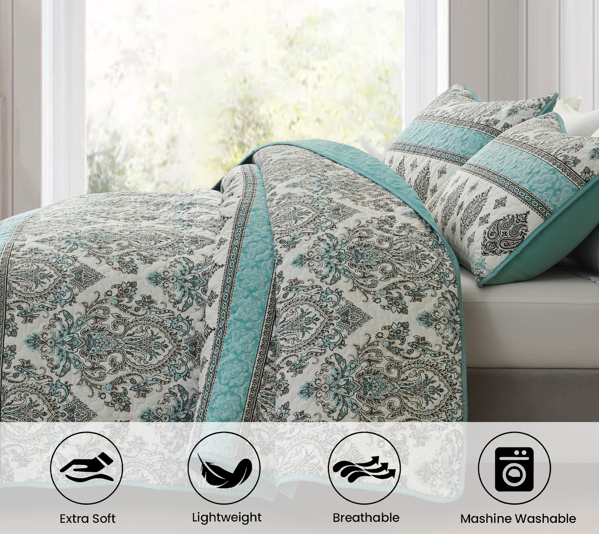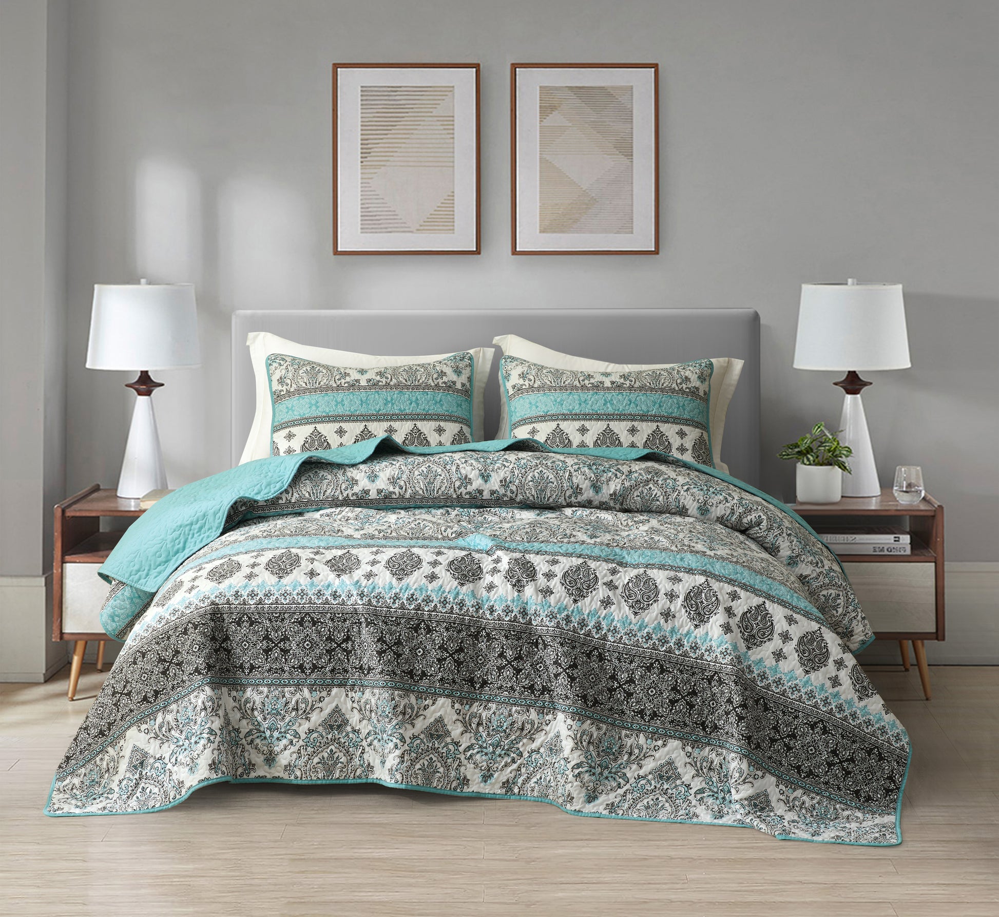 2/3-Piece Stone-Washed Printed Microfiber Quilt Bedspread Set