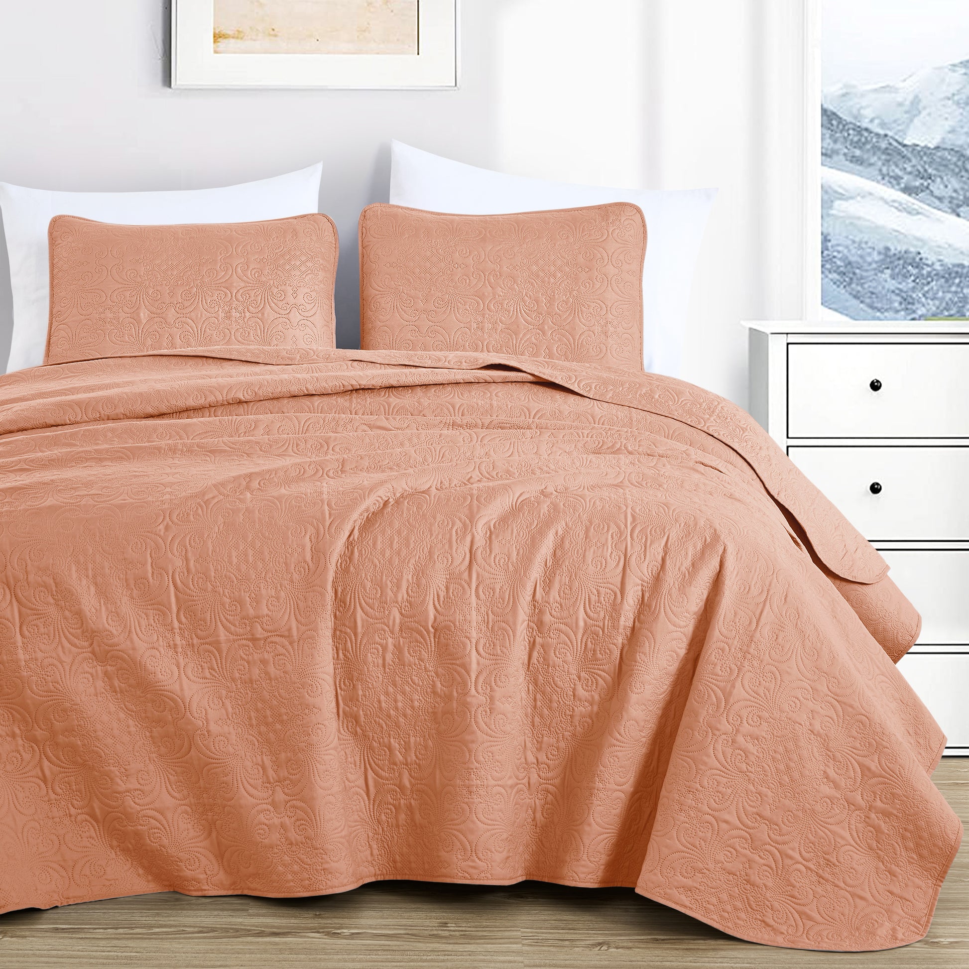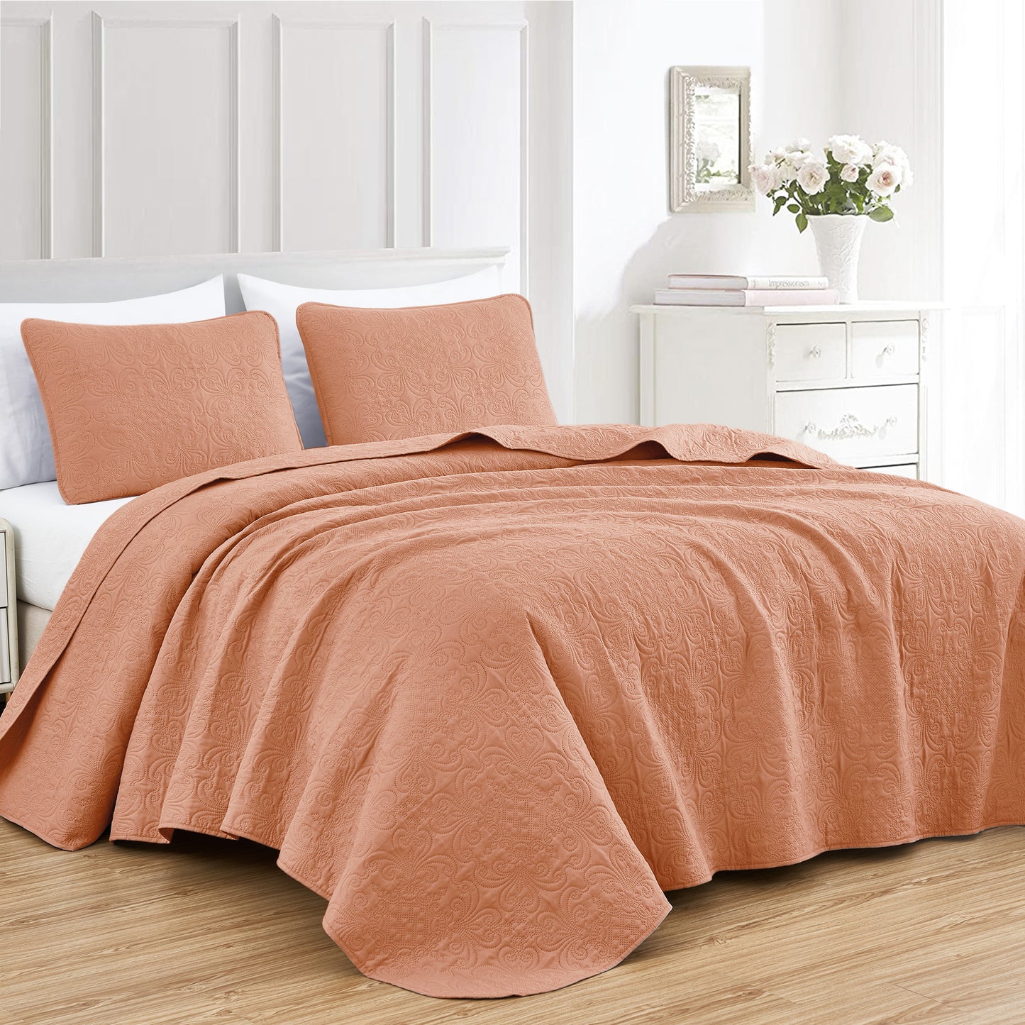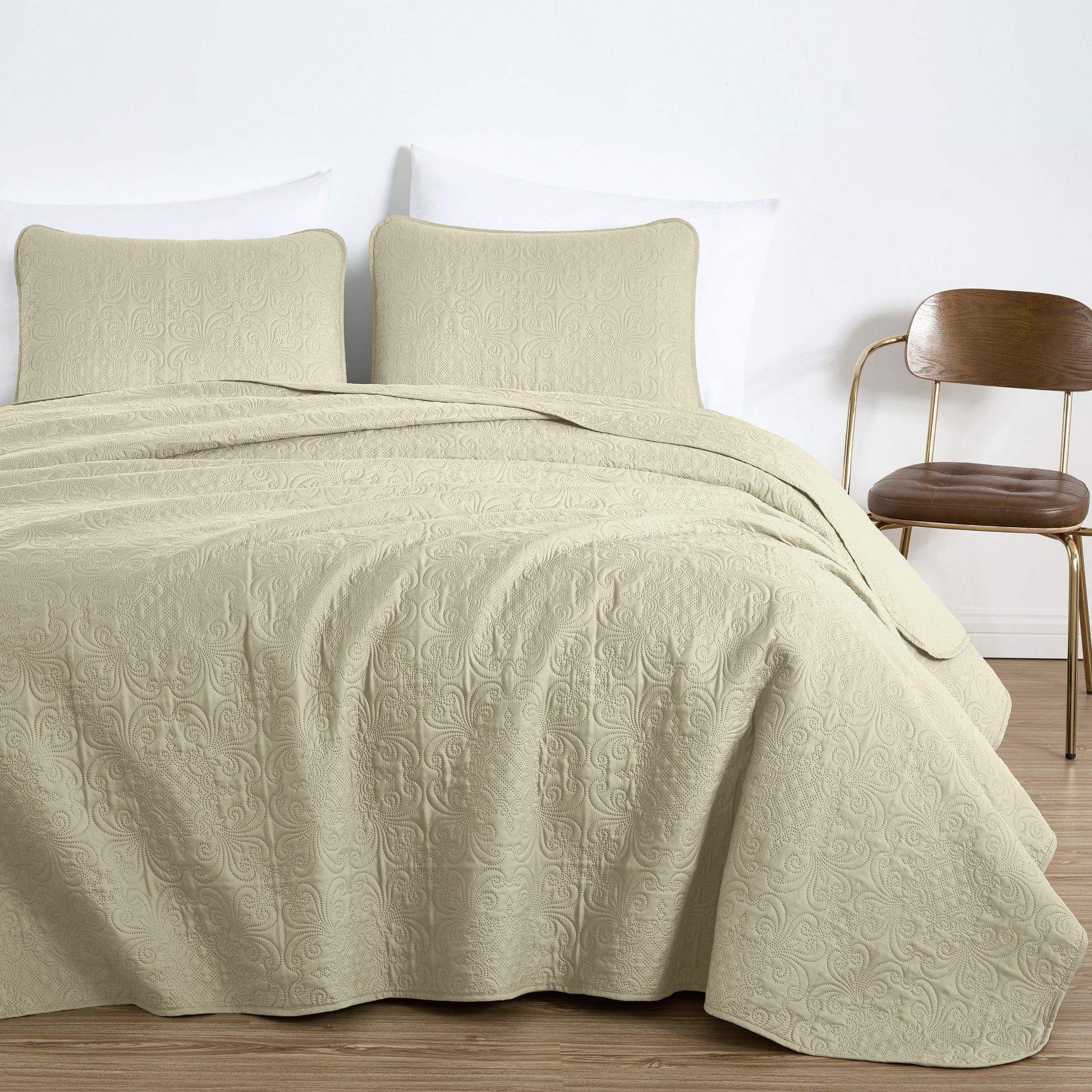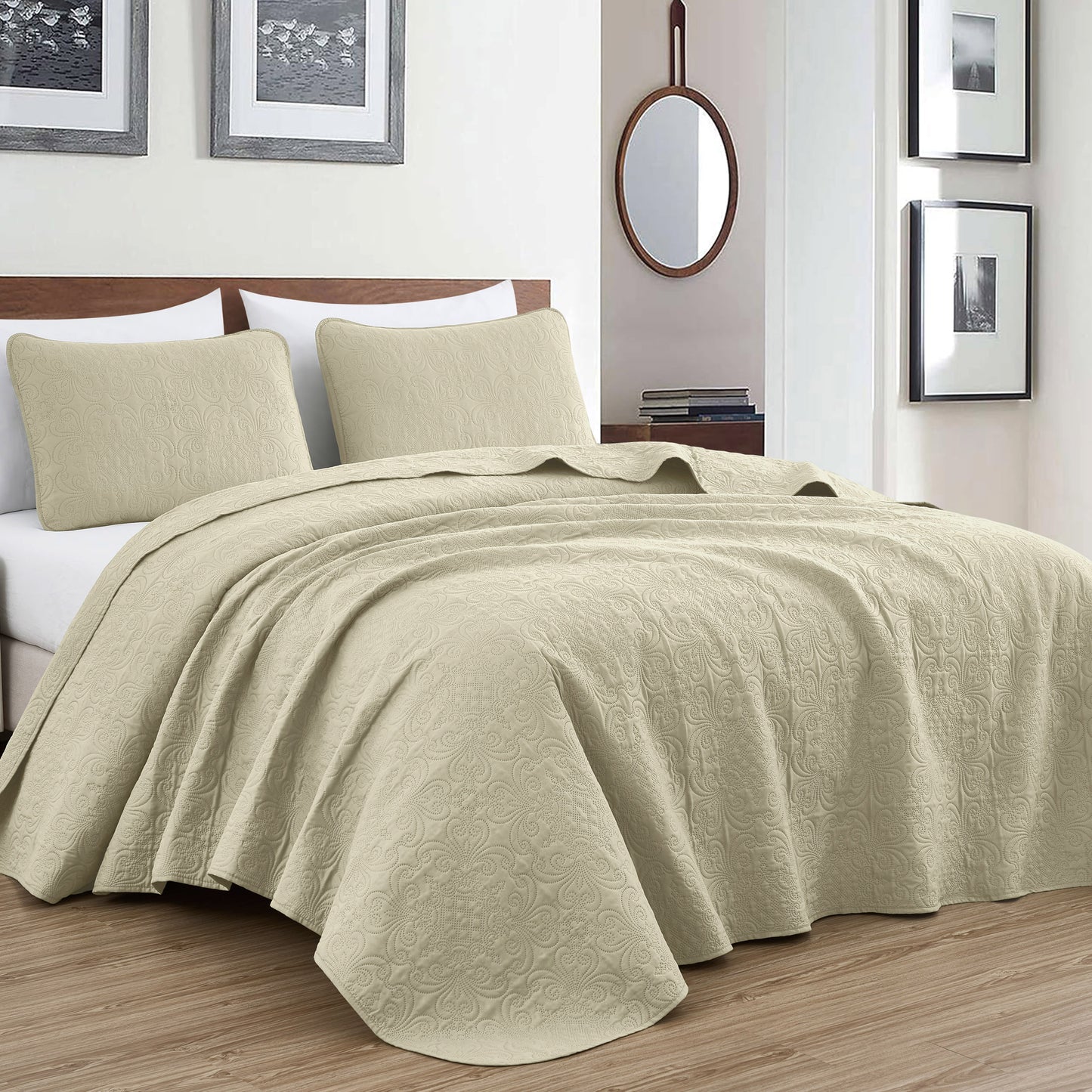 Luca Floral Medallion Embossed Oversized Bedspread Coverlet Set