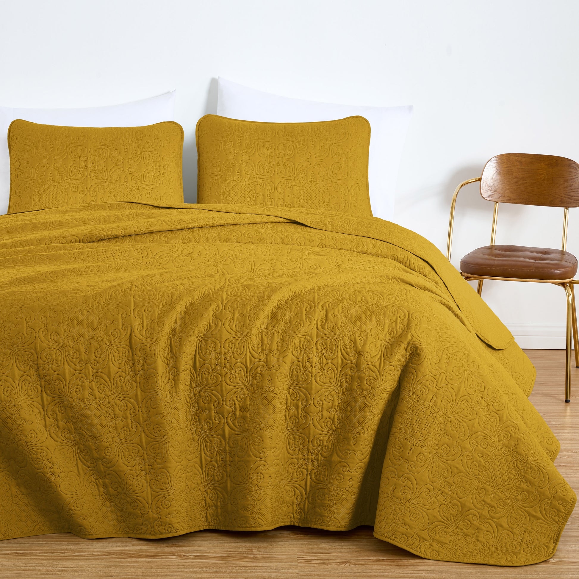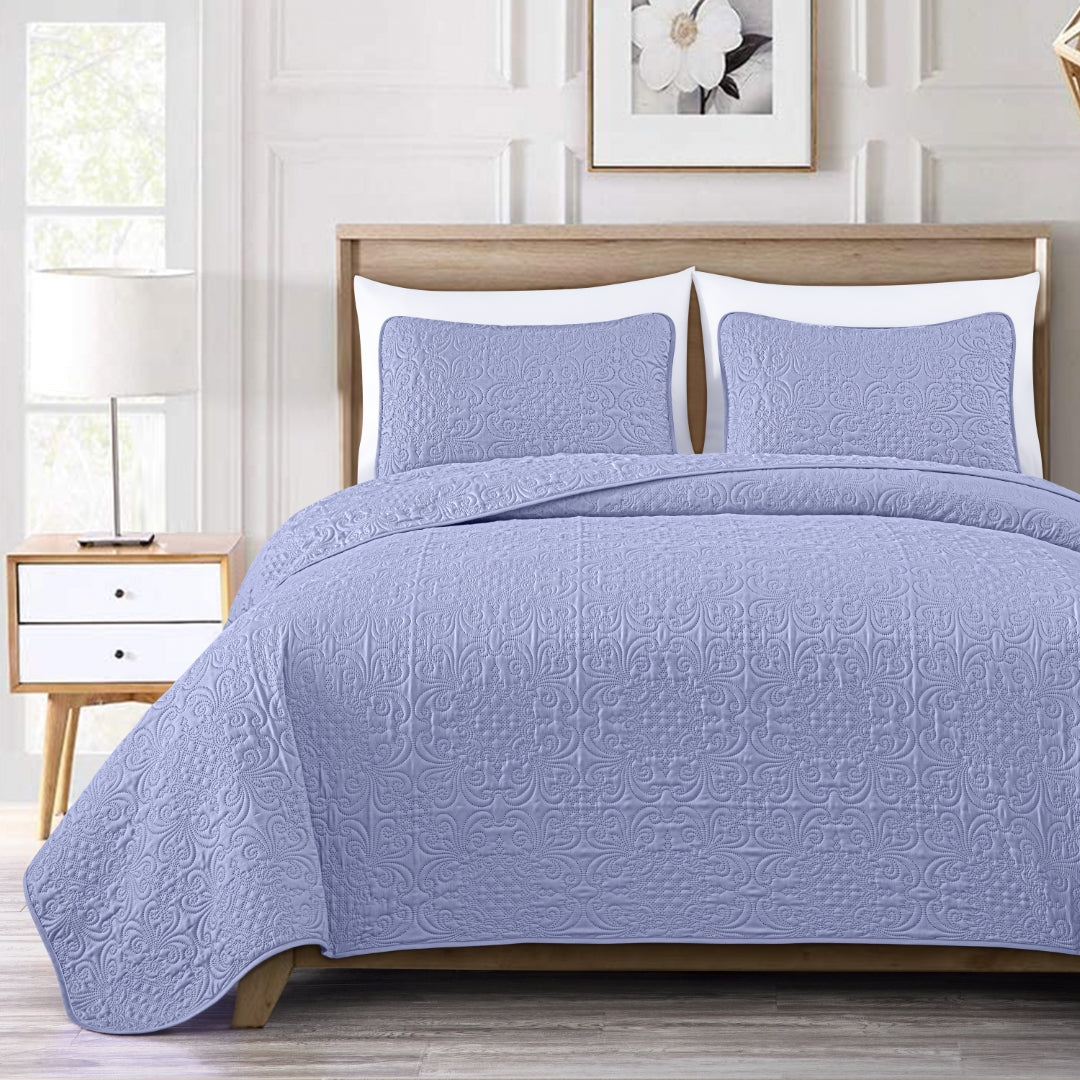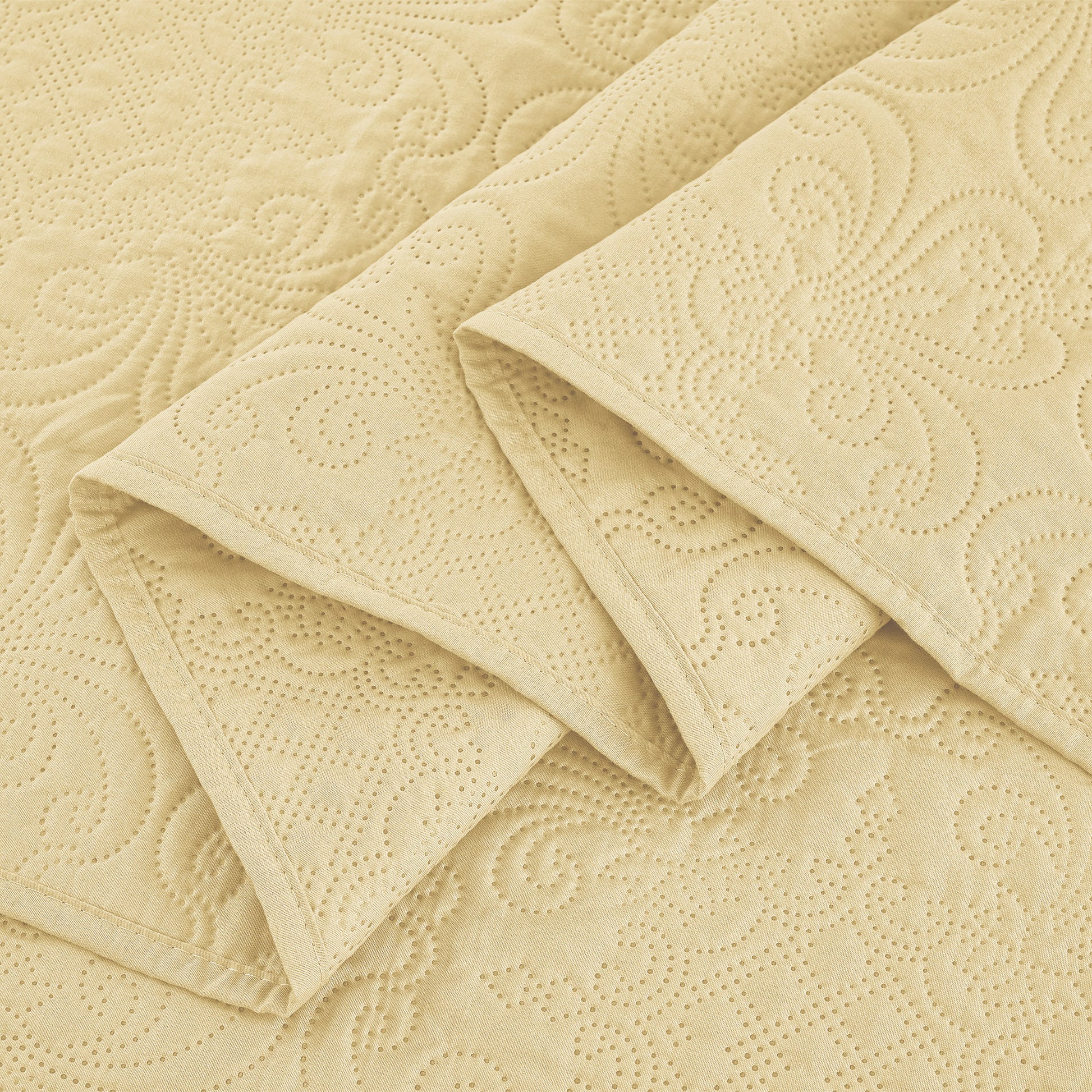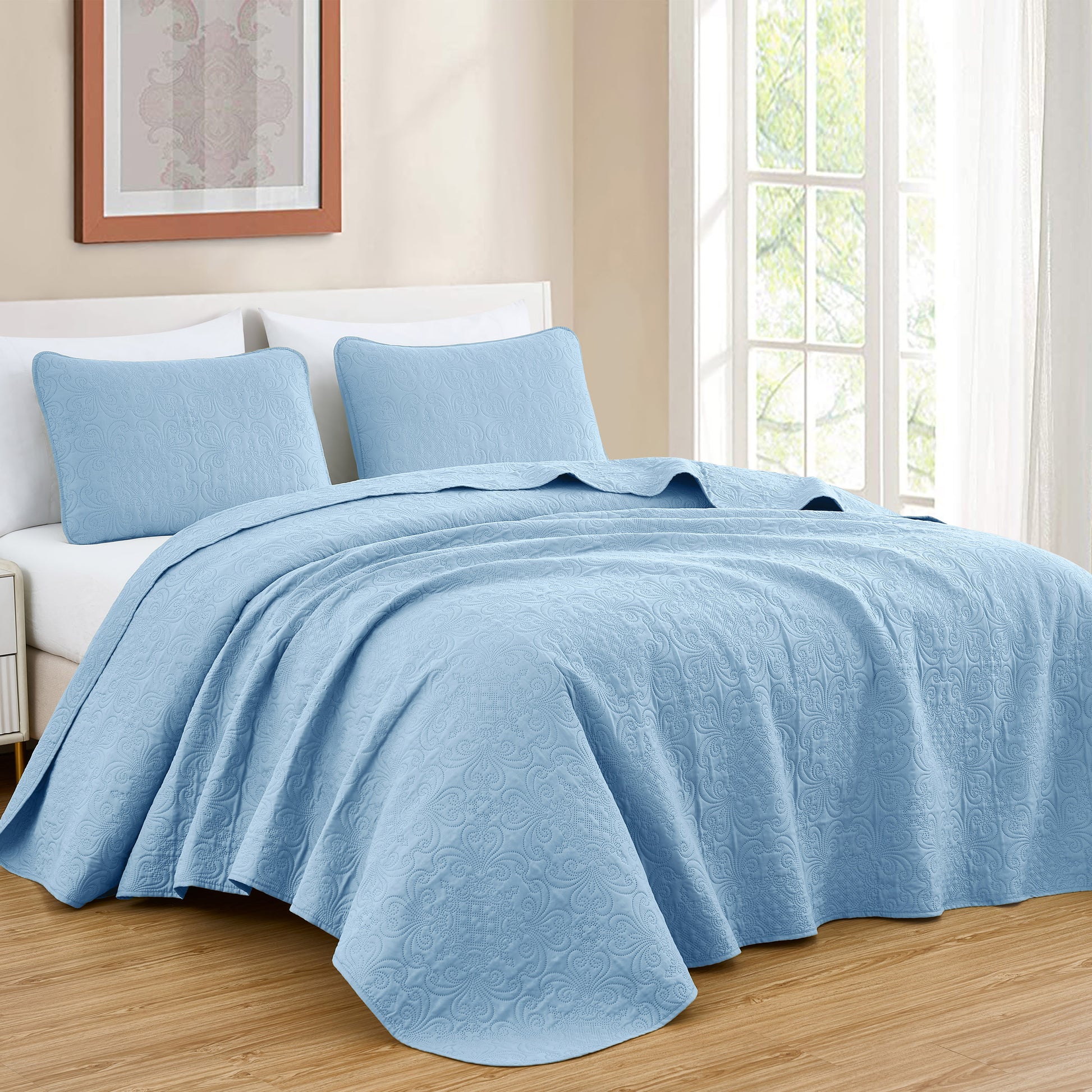 Introducing our luxurious oversized bedspread quilt set made from ultrasonic quilting with a stunning floral medallion pattern! This bedspread quilt is designed to provide you with the ultimate comfort and style, all while adding a touch of elegance to your bedroom. Crafted from a soft microfiber polyester material, this bedspread quilt is soft, cozy, and lightweight. The ultrasonic quilting process ensures that the layers of fabric are securely bonded together, making this bedspread more durable. The oversized design means that it will comfortably cover your entire bed, providing you with comfort throughout the night. The floral medallion pattern is beautifully crafted, featuring intricate details and a unique design that is sure to catch the eye, resulting in a beautiful textured look and feel that will elevate the look of any room. Whether you're snuggling up for a cozy night in or enjoying a lazy weekend morning in bed, this oversized bedspread is the perfect addition to your bedding collection. It's machine washable for easy care and maintenance, and durable to last through many washes.