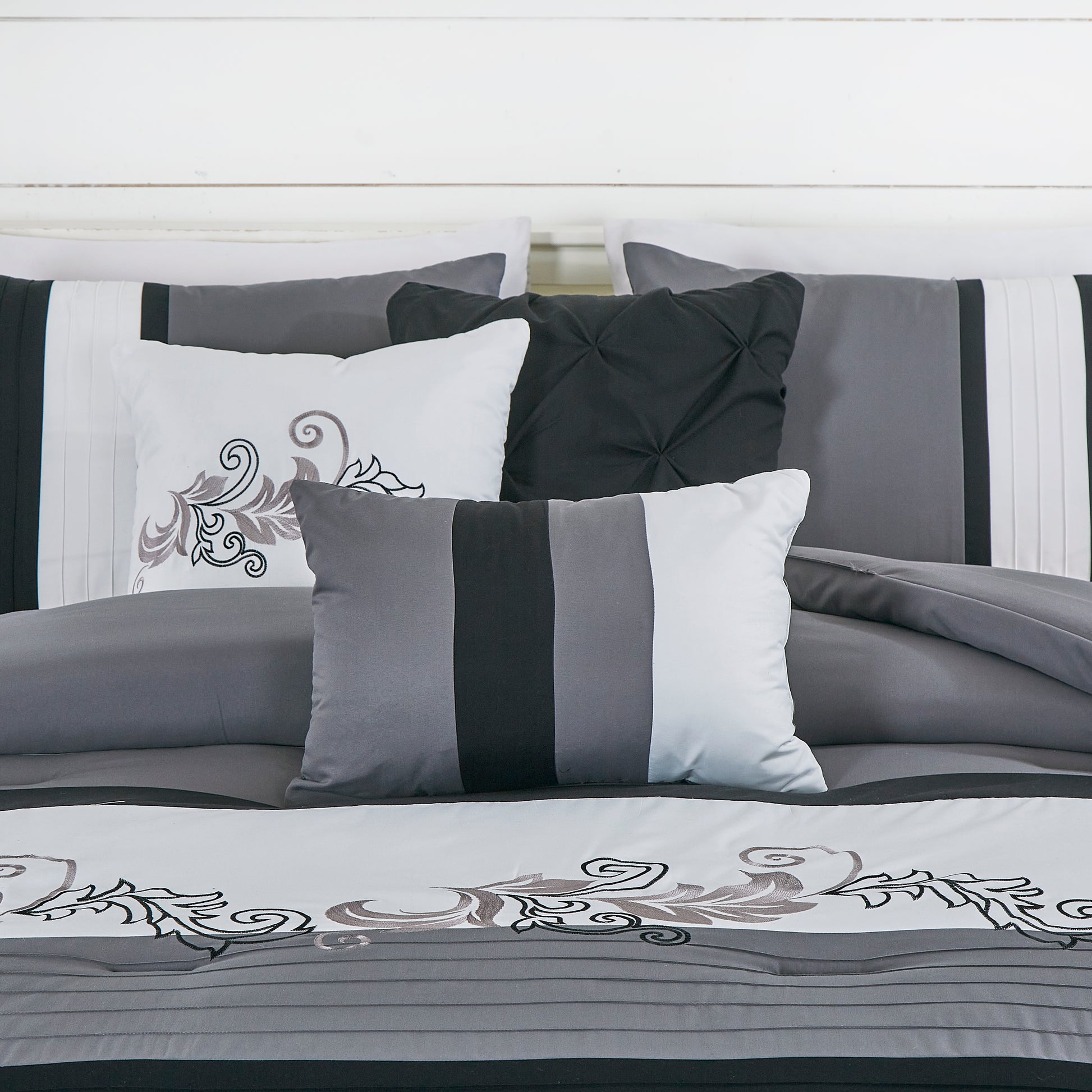 Napa 7-piece Luxury Leaves Scroll Embroidery Bedding Comforter Set
