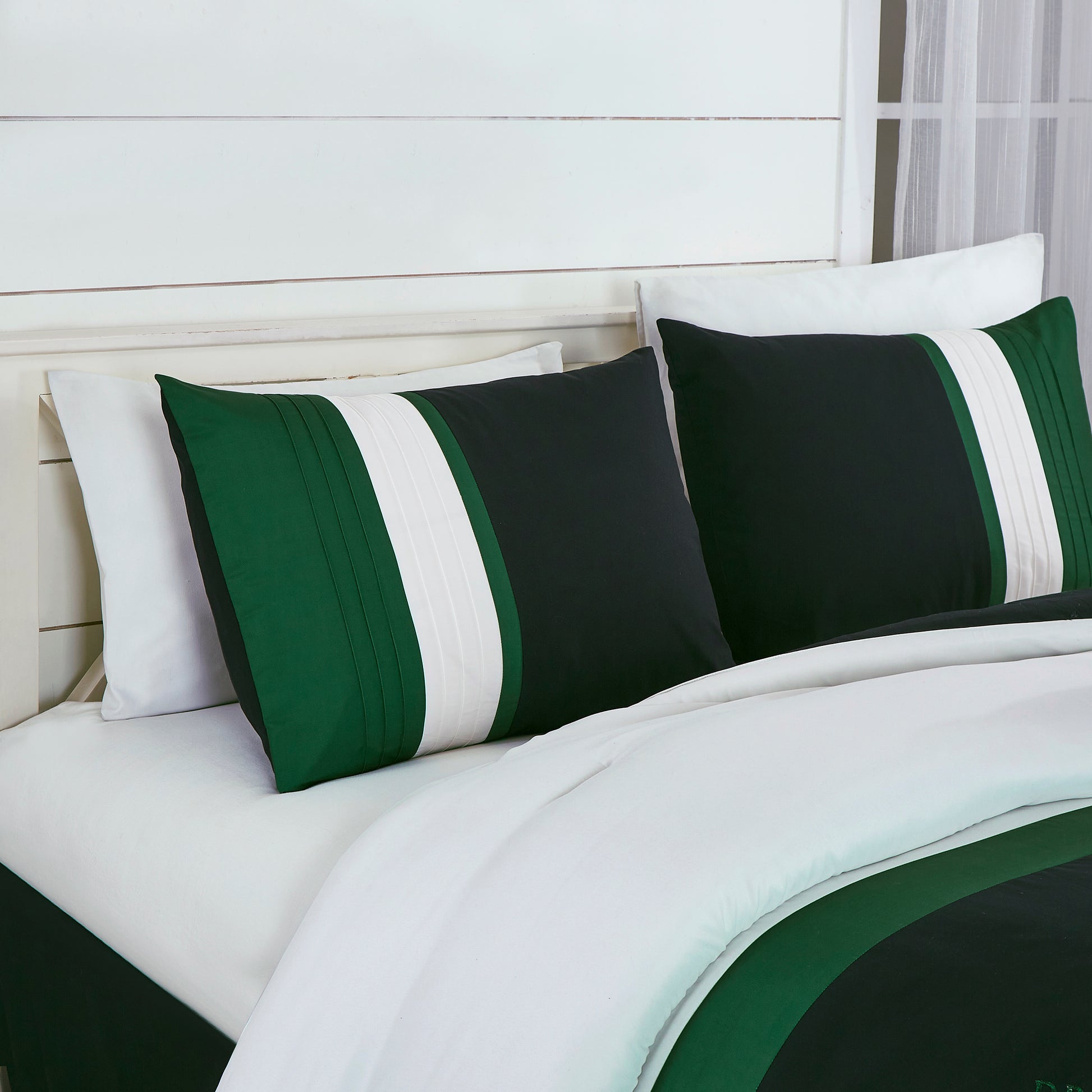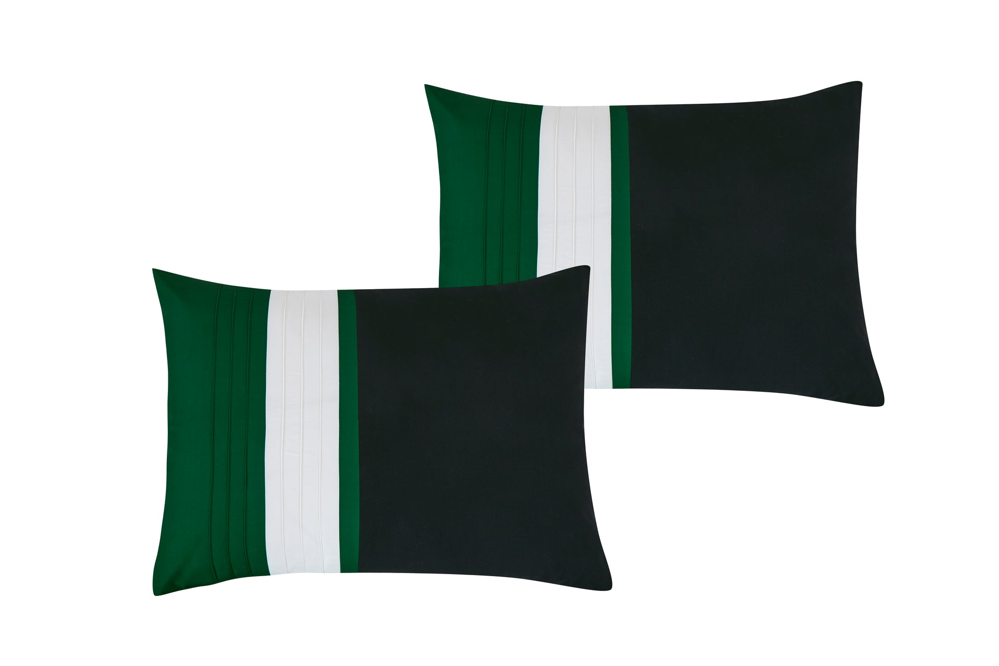 - Two-tone embroidery stitching pattern beautifully displayed as the centerpiece across the comforter