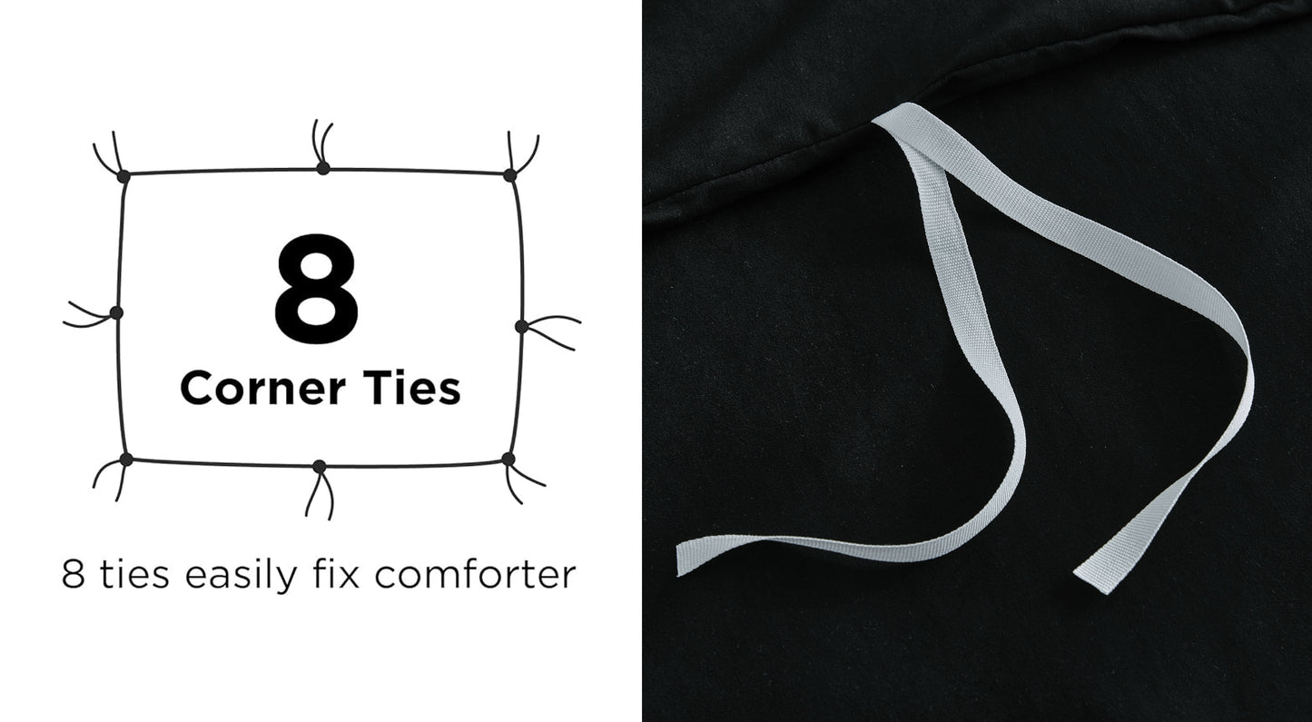 - The duvet cover uses a hidden button closure and interior corner ties to help keep your insert in place throughout the night. Included are 8 interior corner ties prevent shifting and ensure a snug fit.