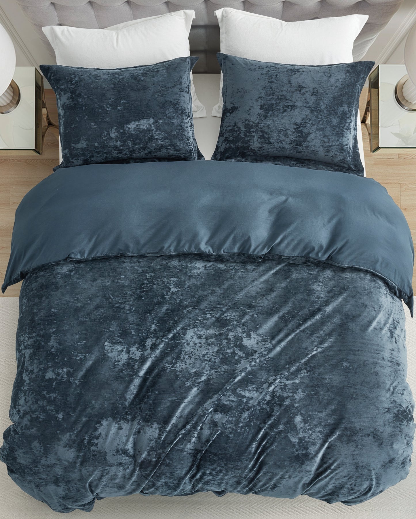 Piers Luxurious Distressed Velvet Duvet Cover Set