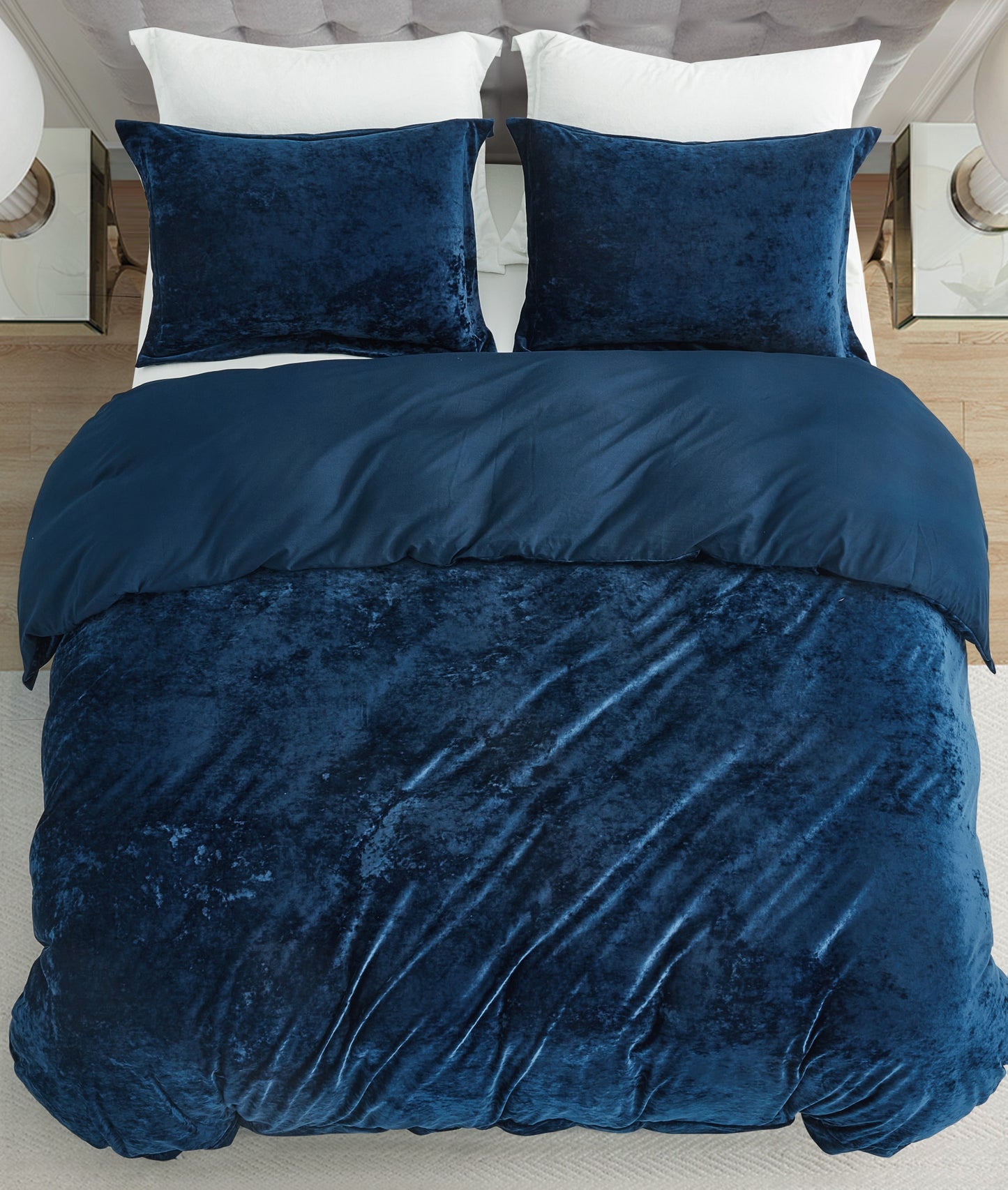 - Luxurious Piers 3-Piece Distressed Velvet Duvet Cover Set by Chezmoi Collection